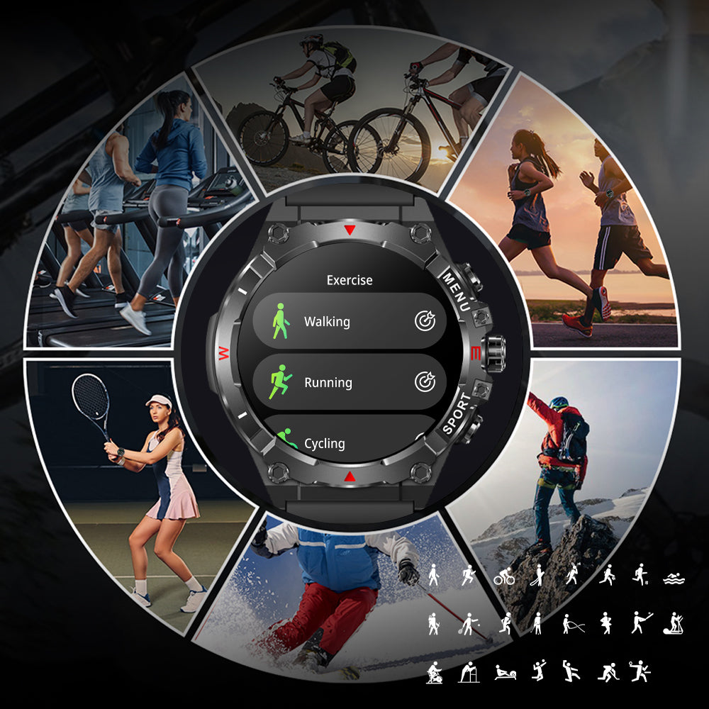 أكثر من 100 وضع رياضي، وعرض بيانات رياضية مختلفة في الوقت الحقيقي، وضبط شدة التمرين بشكل صحيح وفقًا للبيانات الرياضية.