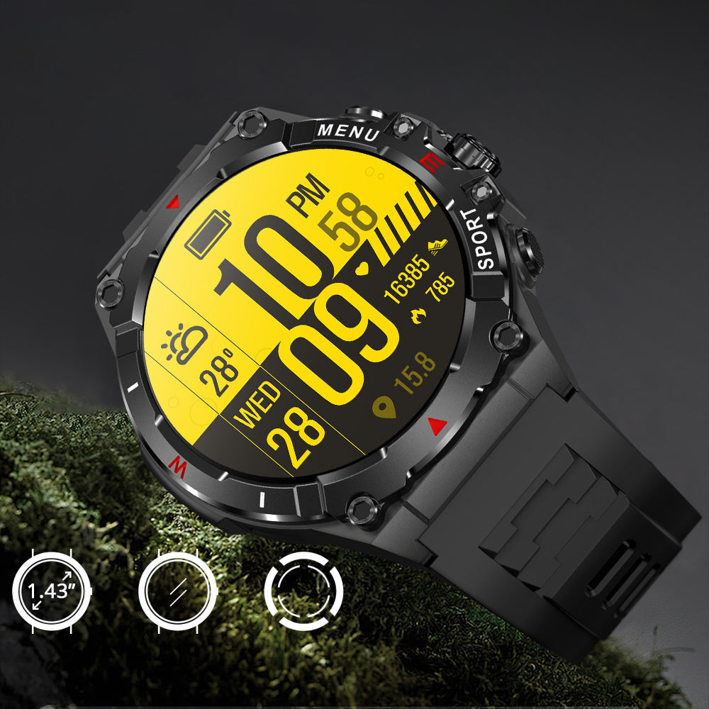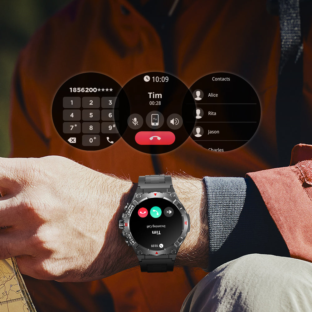 تتمكن الساعة أيضًا من الرد على المكالمات وإجرائها، ويتم مزامنة دفتر العناوين مع الهاتف، ويمكنك الرد على المكالمة بلمسة واحدة، والتحقق من الوقت برفع يدك، والبقاء على اتصال بالعالم.